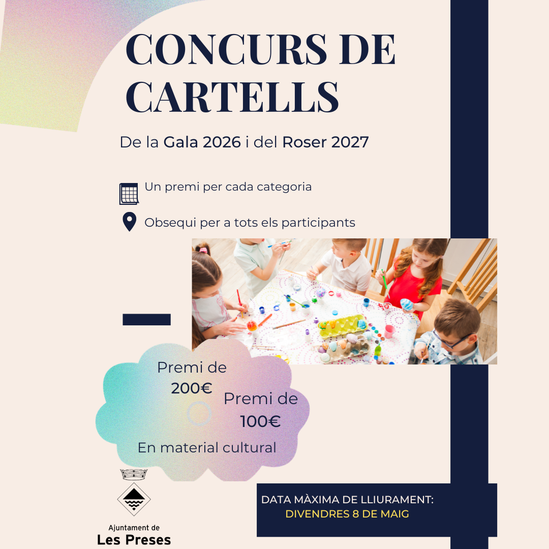 Un any més organitzem el concurs de cartells per seleccionar el cartell de la Gala de les Preses 2026 i el cartell de la festa del Roser 2027.