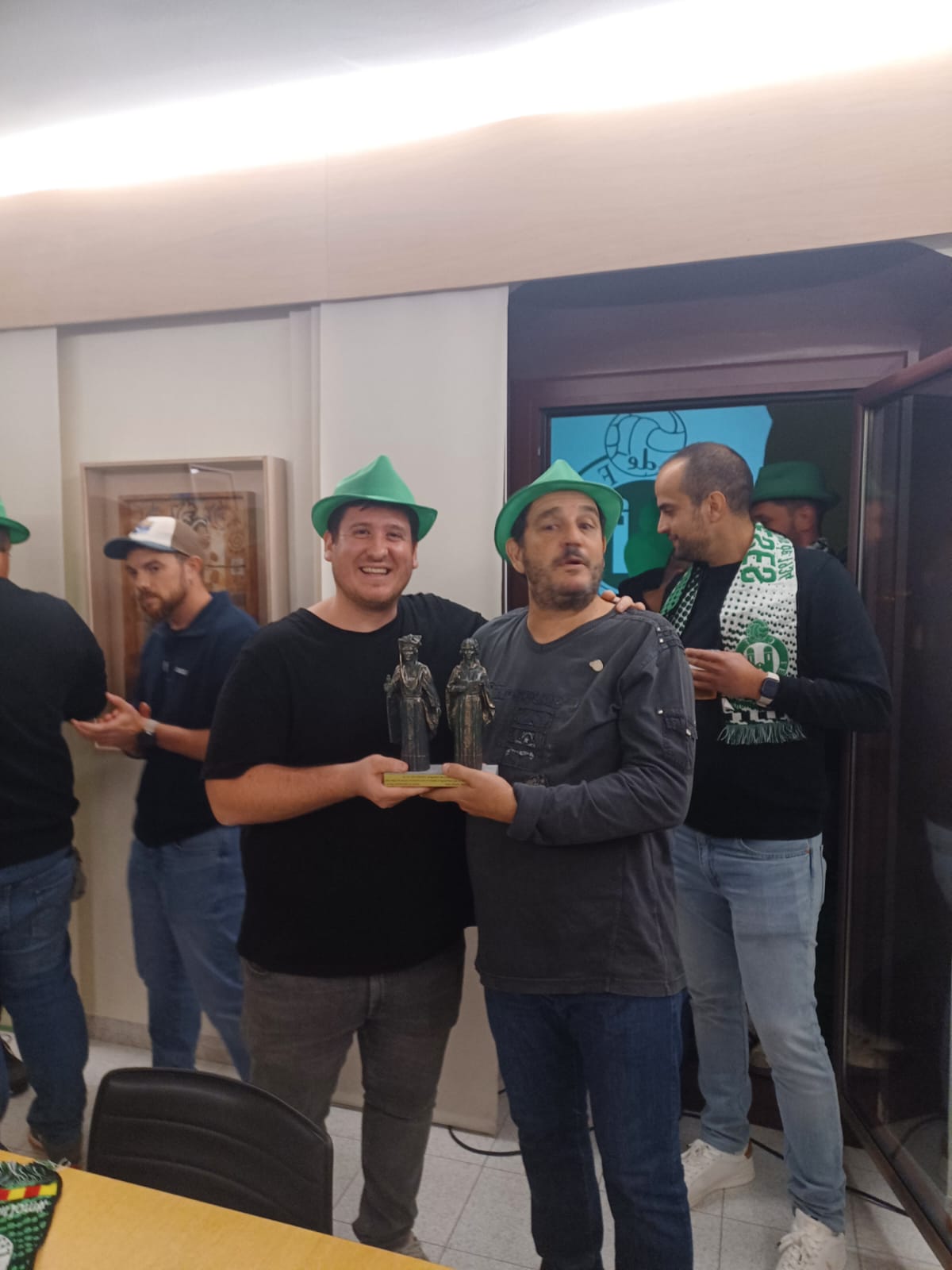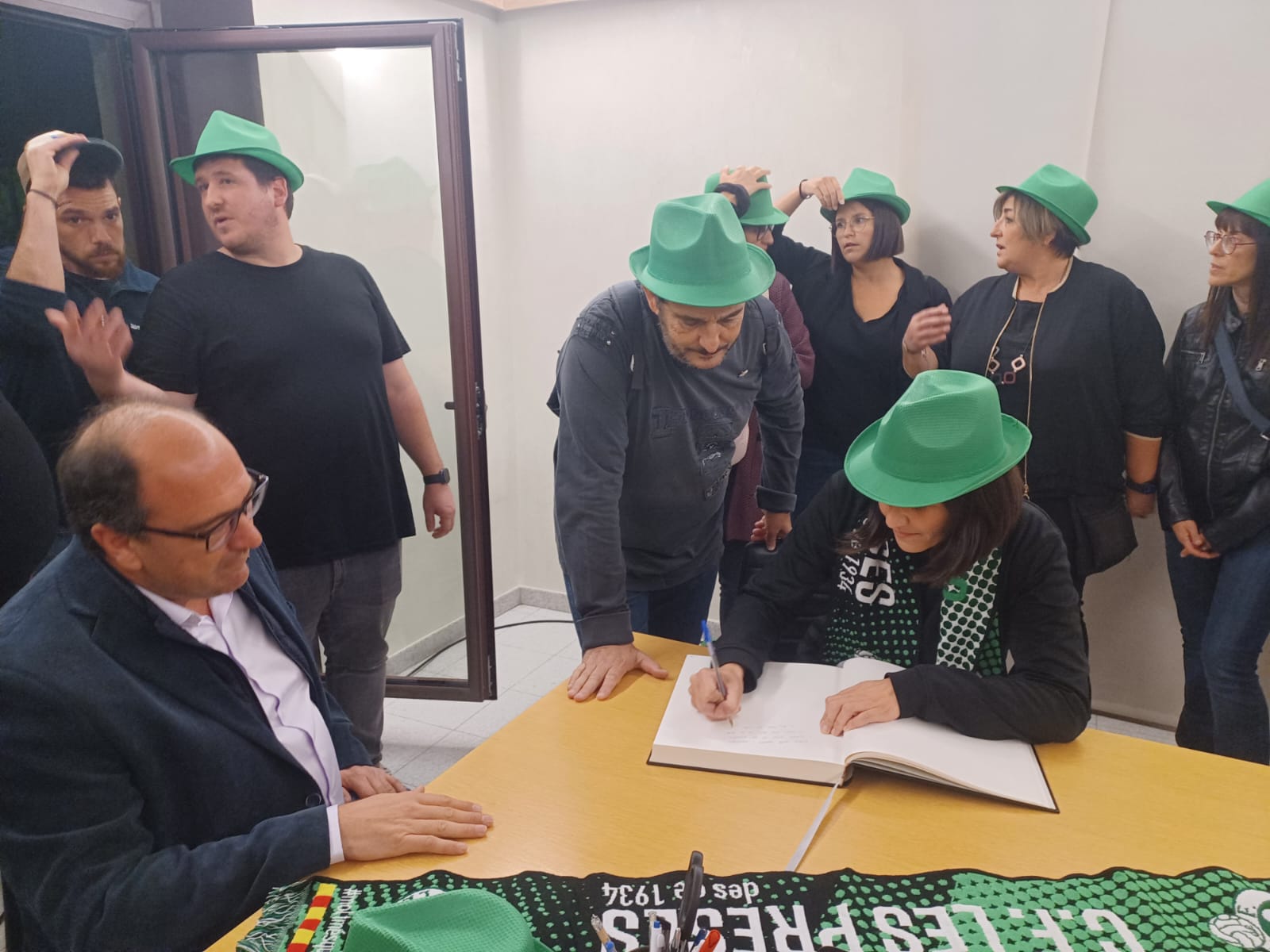 En finalitzar el pregó, el Club de futbol ha signat el llibre d’honor i l’alcalde i el regidor d’esports Ferran Pagès els hi han obsequiat amb unes estatutes dels gegants de les Preses.